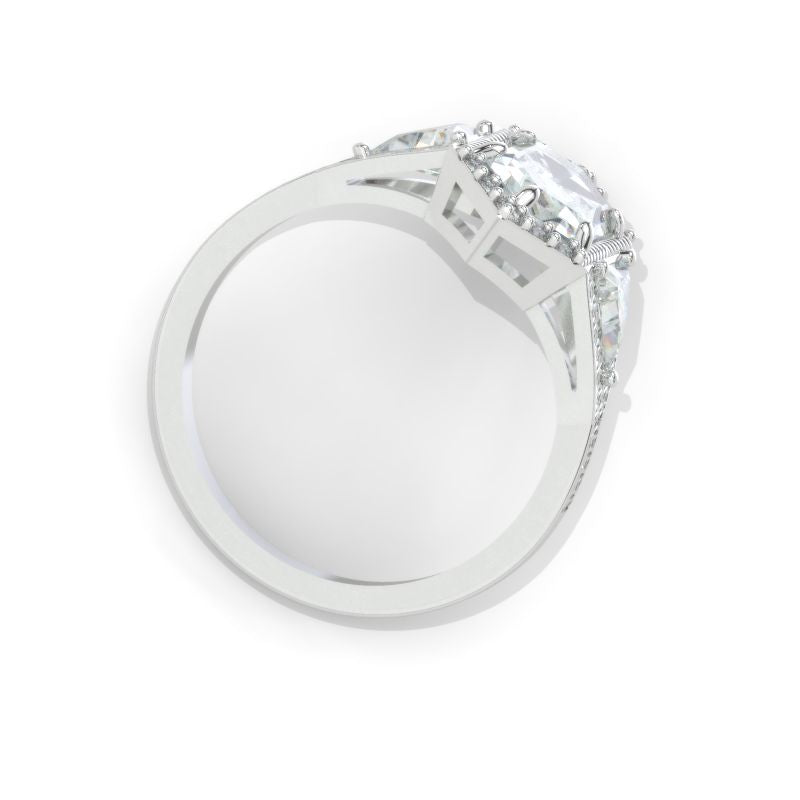 3 Carat Elongated Hexagon Celtic Moissanite 14K White Gold Engagement Ring Model 1345