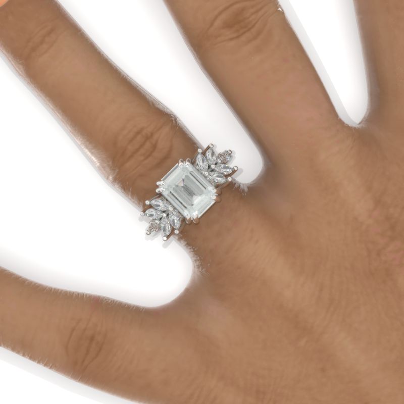 3 Carat Emerald Cluster Giliarto Moissanite White Gold Engagement Ring Model 962