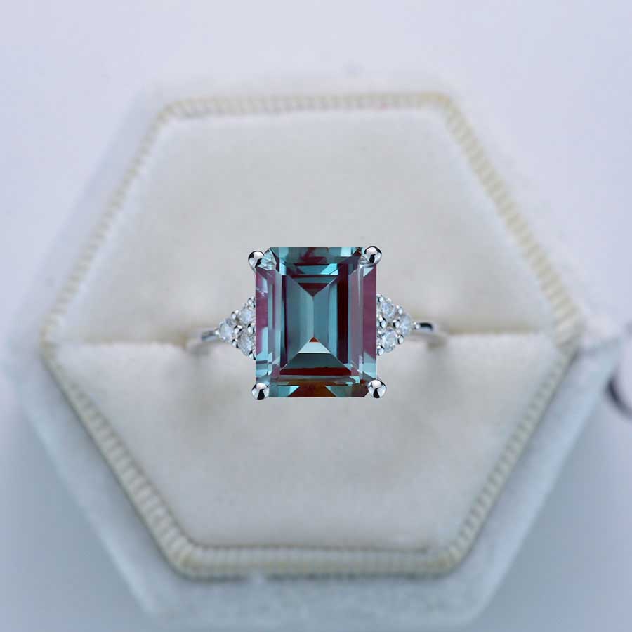 Emerald Cut Ethically Lab-Grown Alexandrite in 14K White Gold Engagement ring.