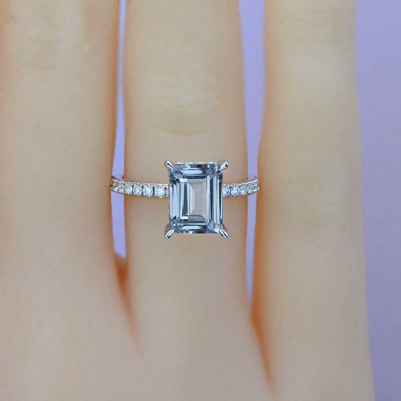 3 Carat Emerald Cut Genuine Natural Aquamarine Hidden Halo Engagement - Giliarto