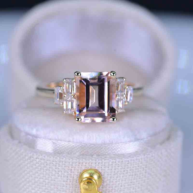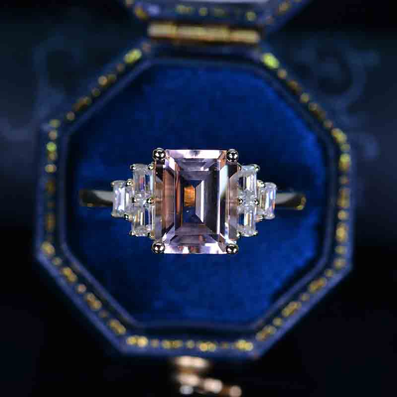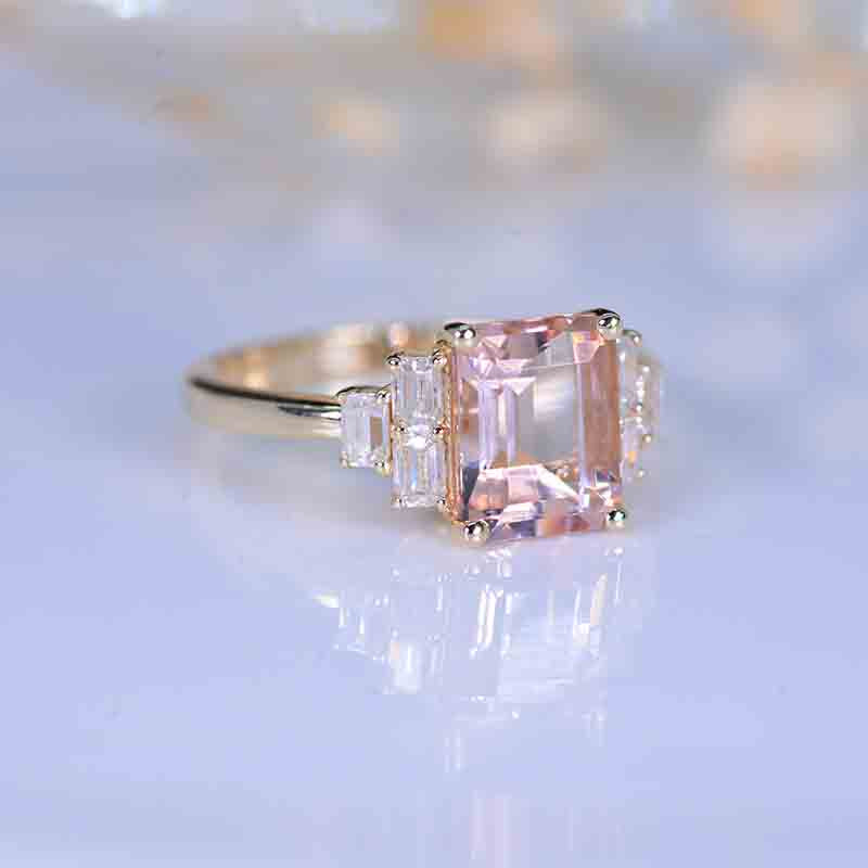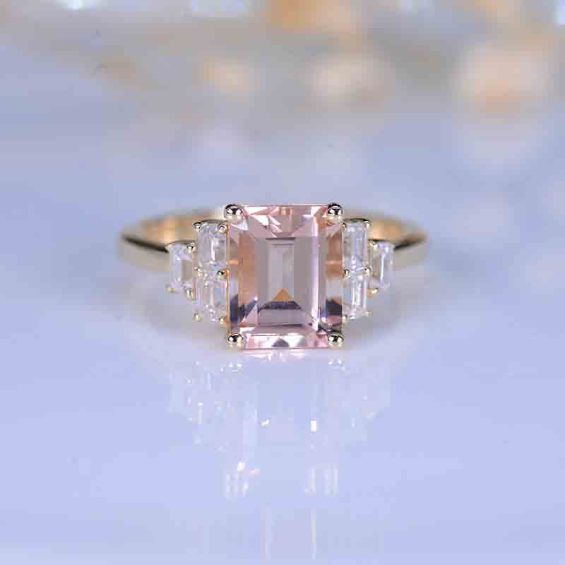 3 Carat Emerald Cut Genuine Peach Morganite Seven-Stone Engagement Rin - Giliarto