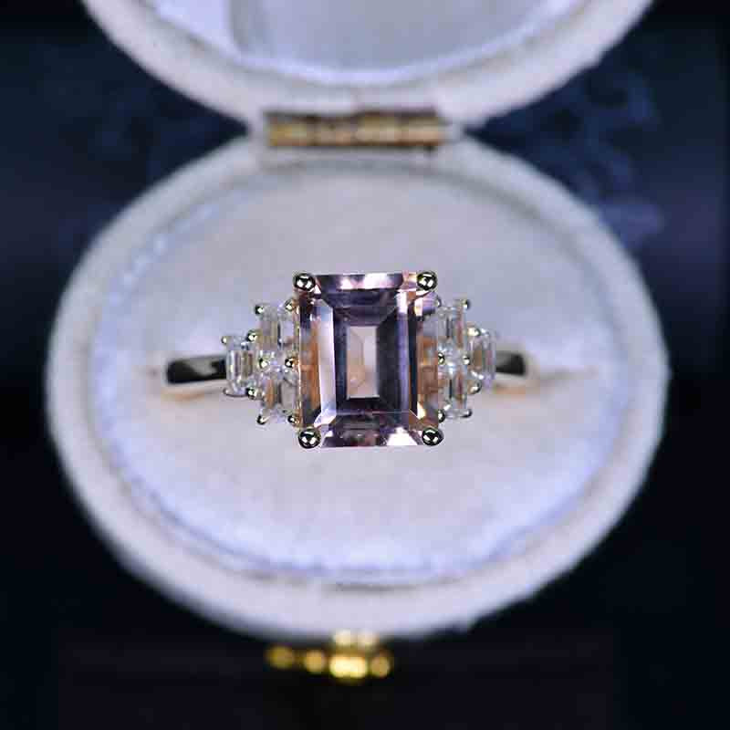 3 Carat Emerald Cut Genuine Peach Morganite Seven-Stone Engagement Ring Model 1017-9x7mm