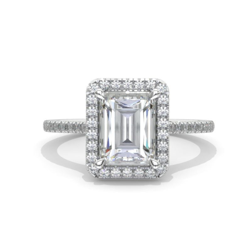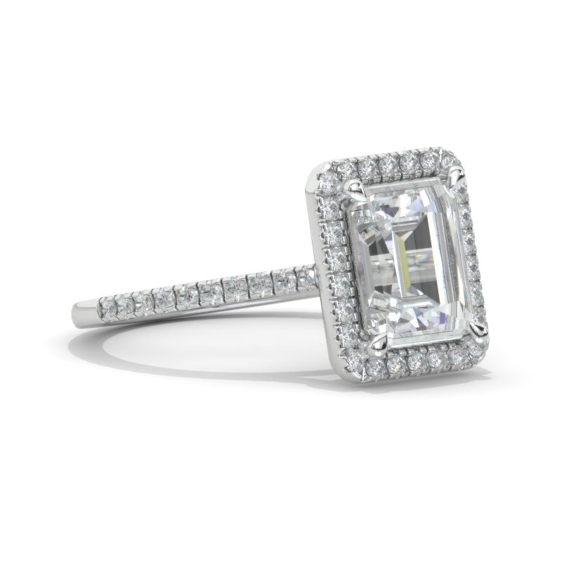 3 Carat Emerald Cut LAB-Grown Diamond Halo Engagement Ring Model 812