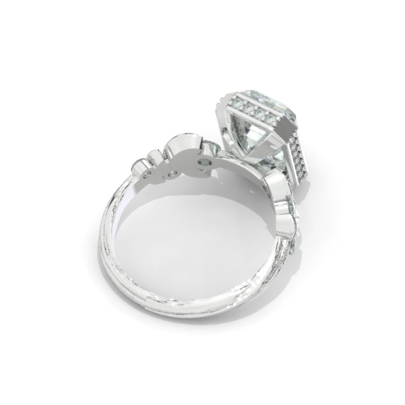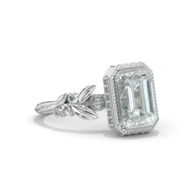 Engagement Ring: 3 Carat Moissanite Emerald Cut 10x7mm D-Colorless VVS1-Clarity, VG-Cut, Ex-Polish, VG-Symmetry Center Stone with Colorless 0.4 CTW MoissaniteÂ