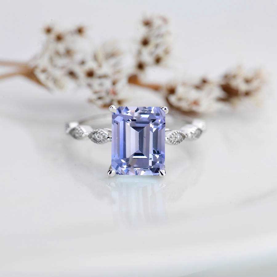 Emerald Cut Ethically Lab-Grown Purple Sapphire Ā 14K White Gold Engagement ring.