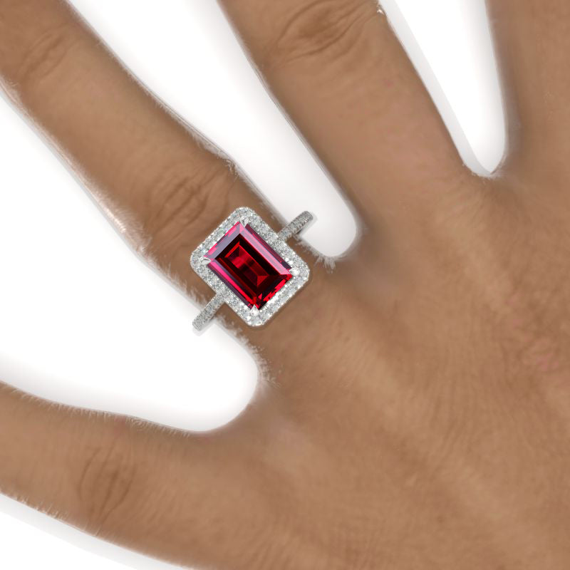 3 Carat Emerald Cut Ruby Halo Engagement Ring - Giliarto