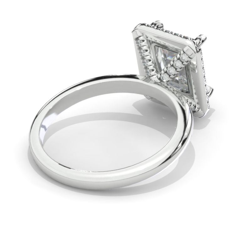 The default design option features approximately 3 Carat Ethically Lab-Grown White Opal Emerald 9x7mm  VG-Cut, Ex-Polish, VG-Symmetry Center Stone with