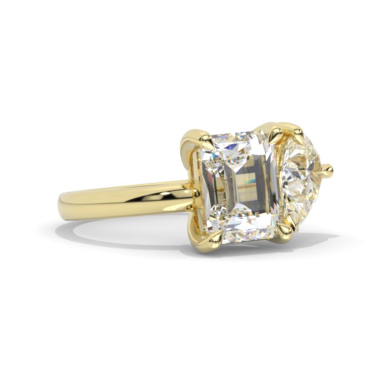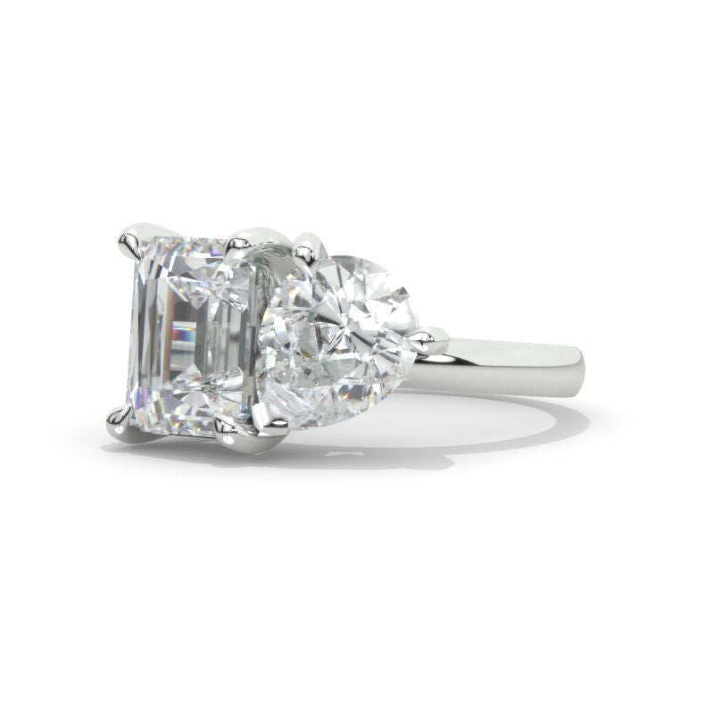 The default design option features approximately 3+ Carat LAB-Grown Diamond Emerald Cut 9x7mm and 2 carat 9x7 mm Pear Cut D-Colorless, VVS1-Clarity,VG-Cut,Ex-Polish, VG-Symmetry Center Stone set with D- Colorless LAB-Grown Diamond Accent Stones