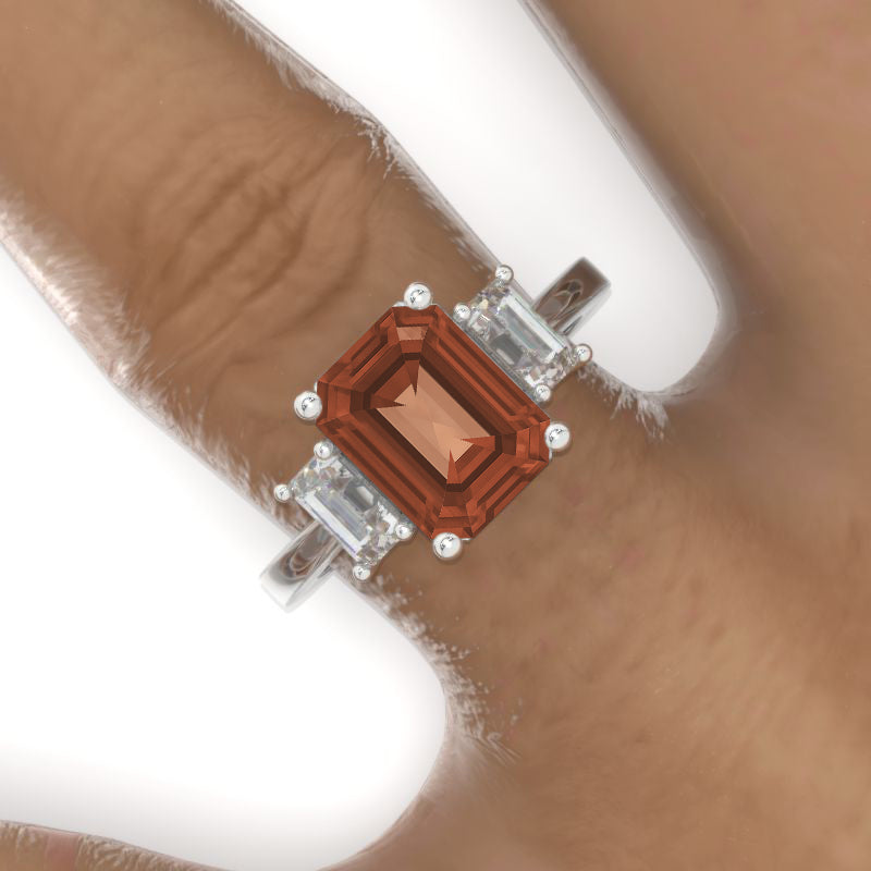 The default design option features approximately 3 Carat Ethically Lab-Grown Zultanite Grade AAA+ Emerald Cut 9x7mm VG-Cut, Ex-Polish, VG-Symmetry Center Stone (D-Colorless) set with D- Colorless Moissanite Accent Stones