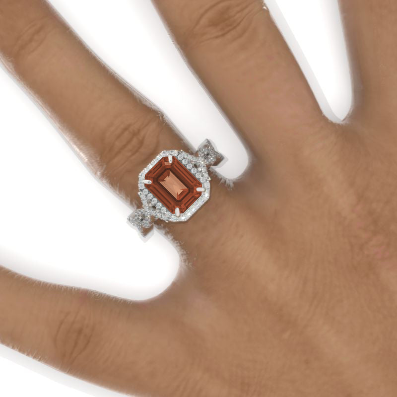 The default design option features 3 Carat 9x7mm Emerald Cut Ethically Lab-Grown Zultanite Grade AAA+Â Center Stone set with 1.2 CTWÂ Moissanite Accent Stone: D-Colorless, VVS1-Clarity, VG-Cut, Ex-Polish, VG-Symmetry