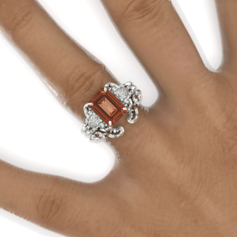 The default design option features 3 Carat 9x7mm Emerald Cut Ethically Lab-Grown Zultanite Grade AAA+ Center Stone set with 0.8 CTW Moissanite Accent Stone: D-Colorless, VVS1-Clarity, VG-Cut, Ex-Polish, VG-Symmetry
