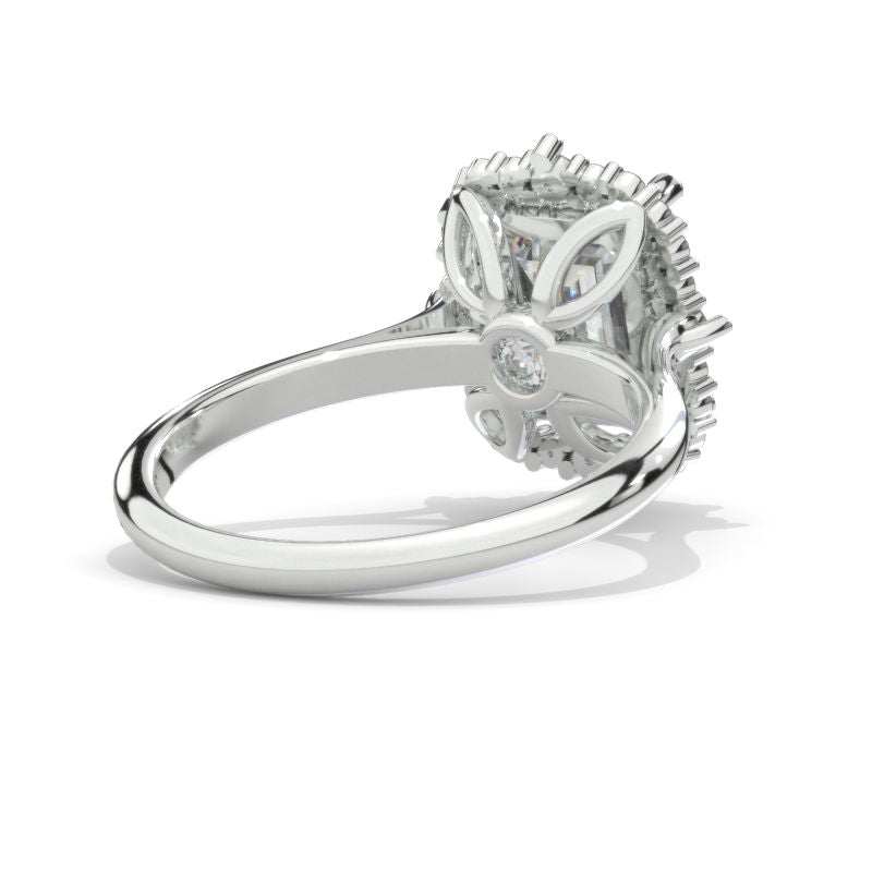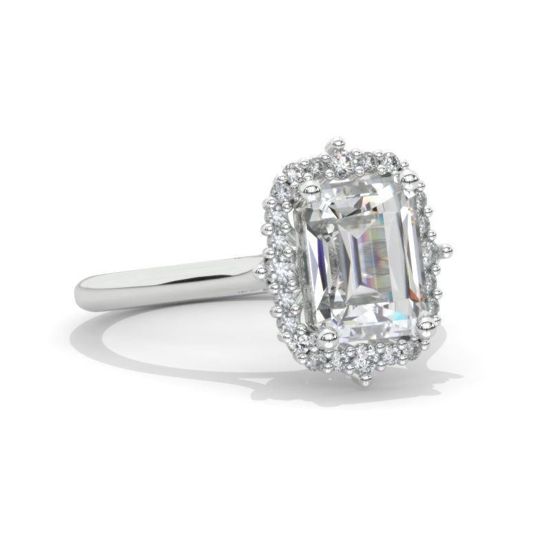 Engagement Ring : LAB-Grown Diamond Emerald Cut Cut 9x7mm D-Colorless, VVS1-Clarity, VG-Cut, Ex-Polish, VG-Symmetry Center Stone with Colorless Approximately 0.53+ CTW LAB-Grown Diamond