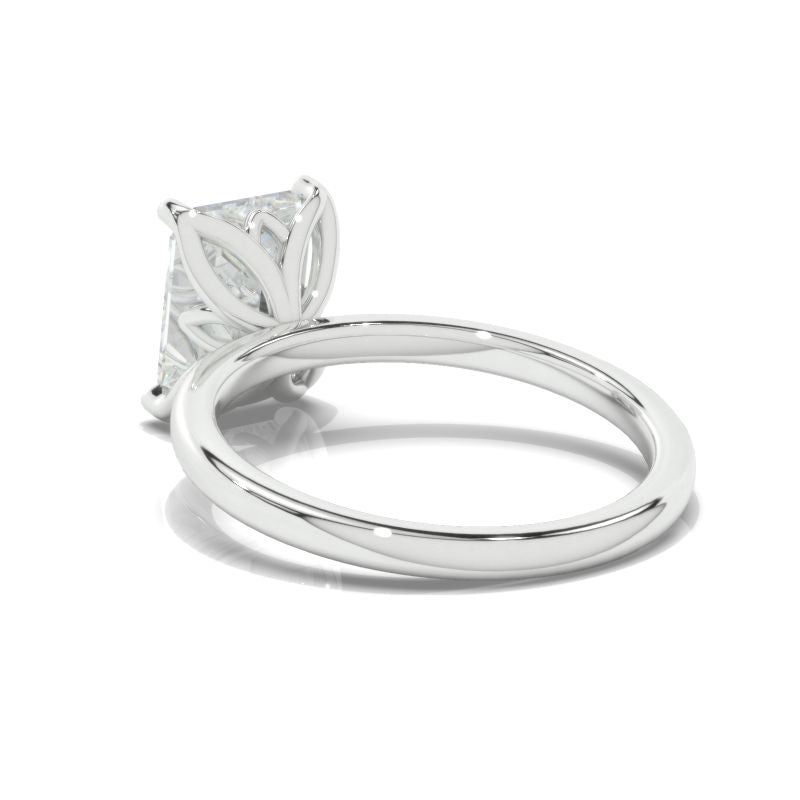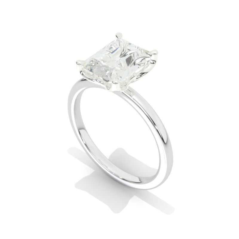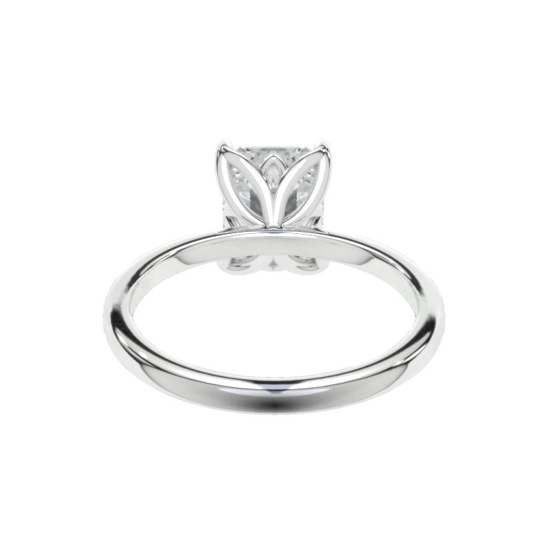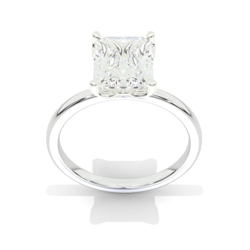The default design option features approximately 3+ Carat LAB-Grown Diamond Emerald Shaped Step Cut 9x7mm D-Colorless, VVS1-Clarity, VG-Cut, Ex-Polish, VG-Symmetry Center Stone set in 14K White Gold.