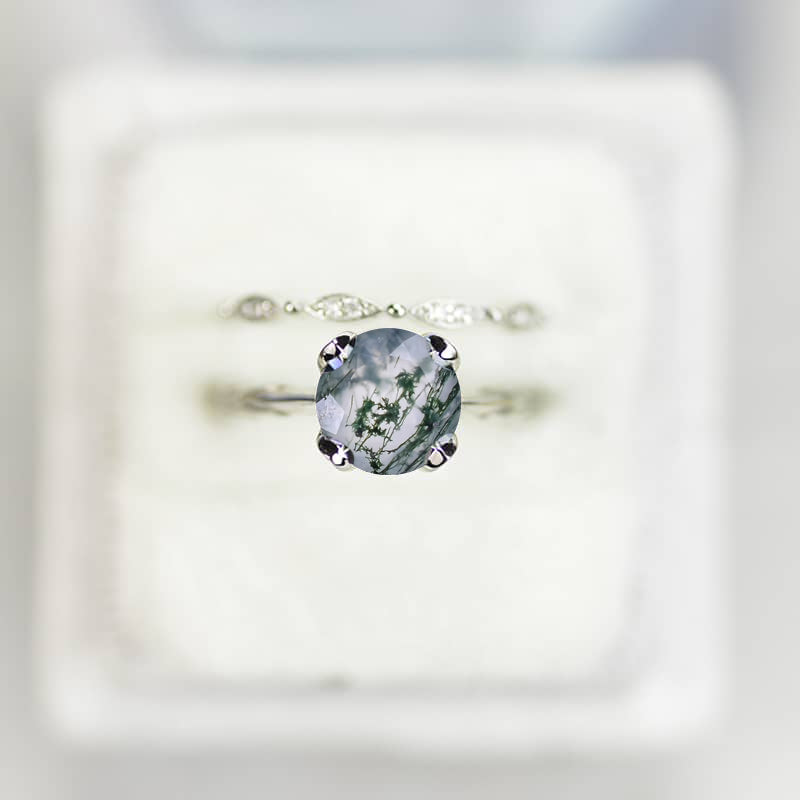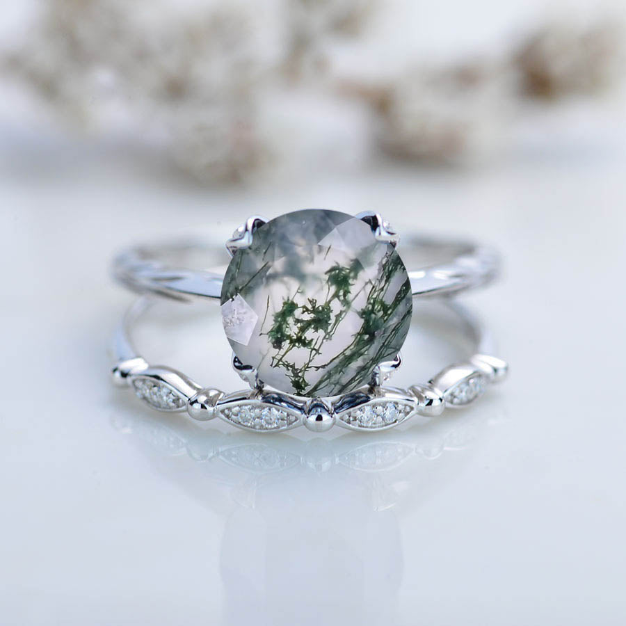 3 Carat Genuine Moss Agate Engagement Eternity Gold Ring Set Model 83- - Giliarto