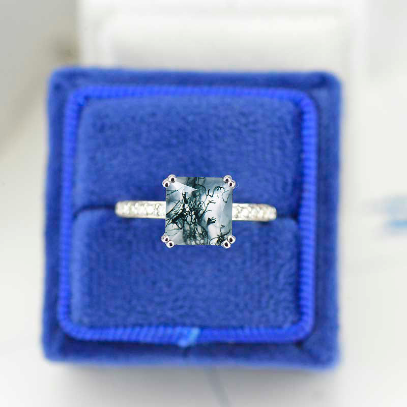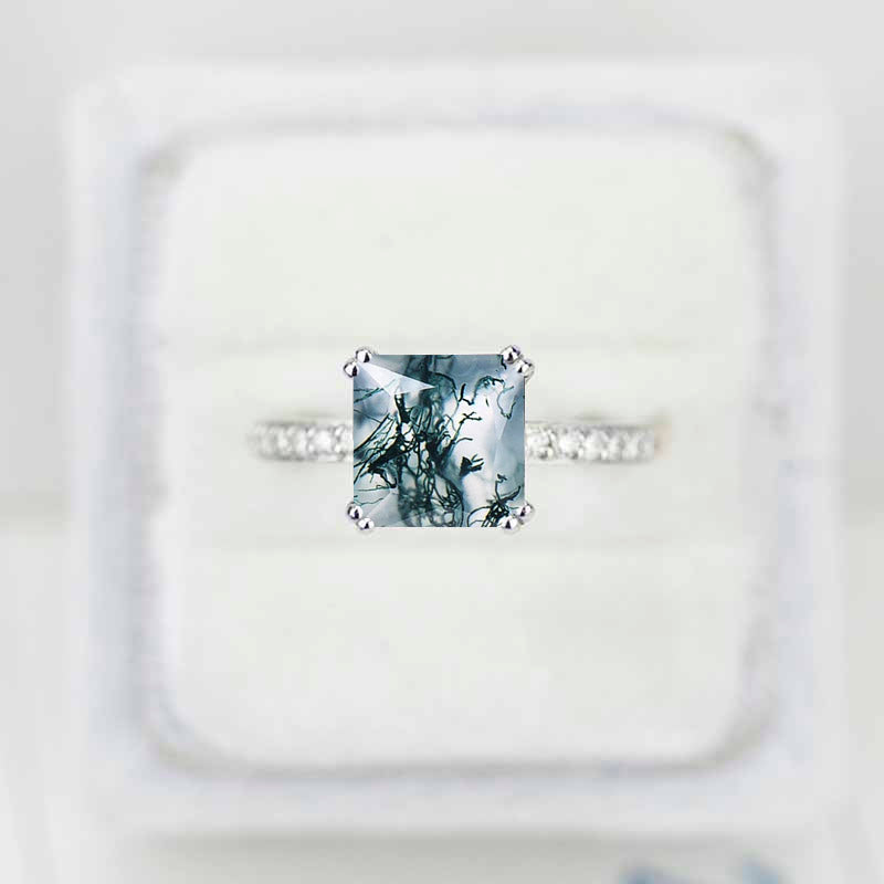 3 Carat Genuine Moss Agate Princess Cut Moissanite Stone 14K White Gol - Giliarto