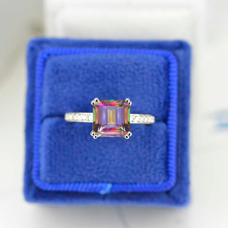 3 Carat Genuine Natural Mystic Topaz Stone 14K White Gold Ring - Giliarto