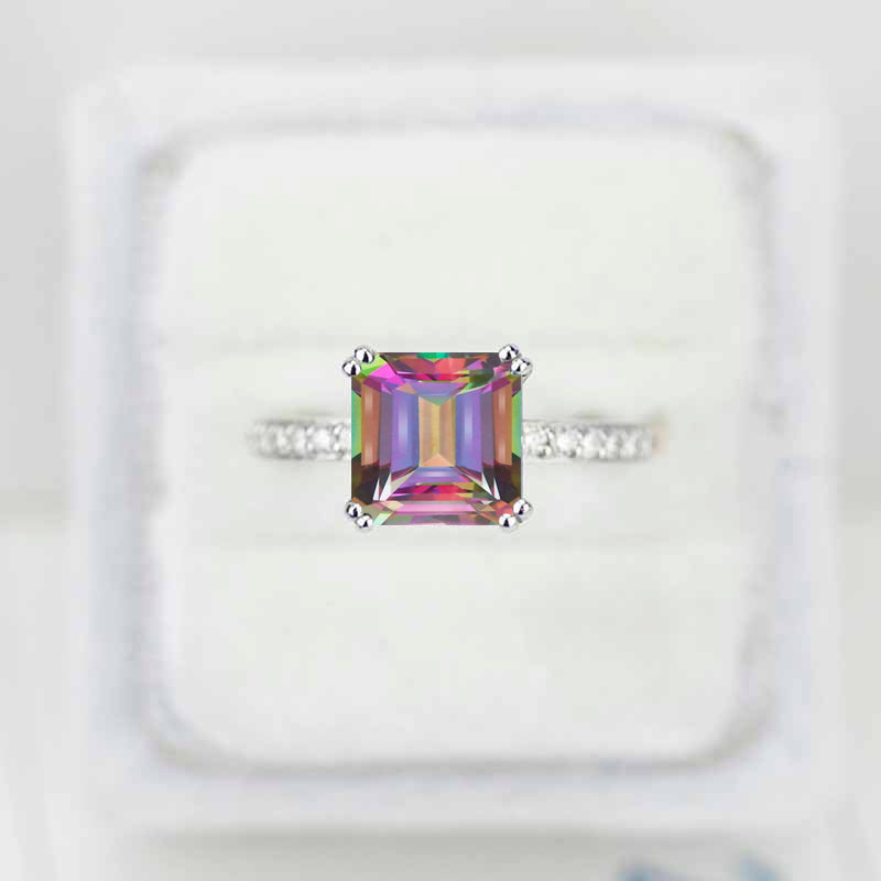 3 Carat Genuine Natural Mystic Topaz (Princess 8x8mm, VVS1-Clarity, Ex-Cut, Ex-Polish, VG-Symmetry)Ā  in 14K White Gold Ring.Ā