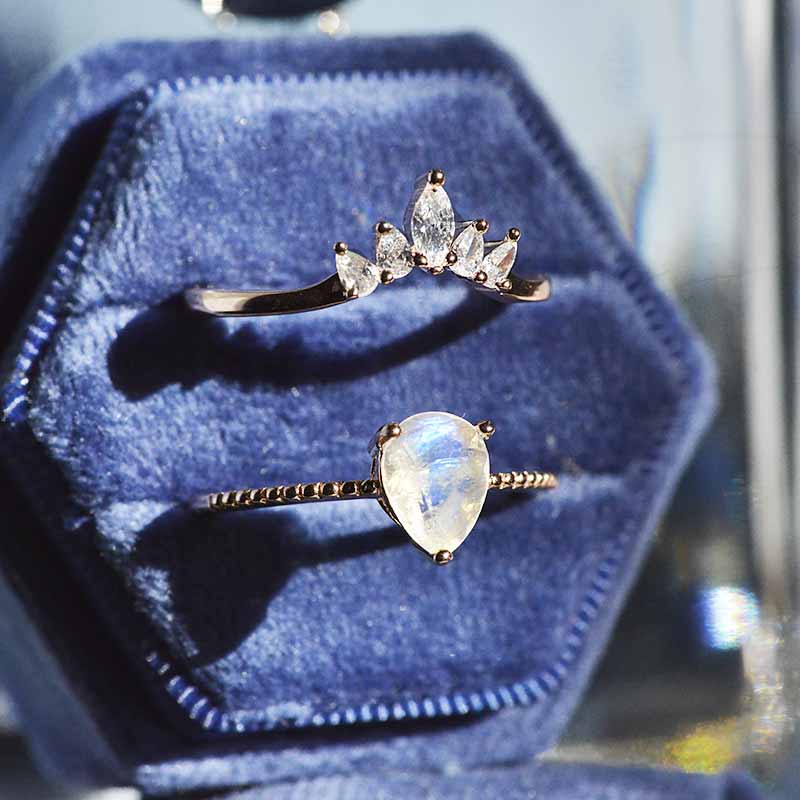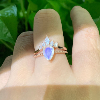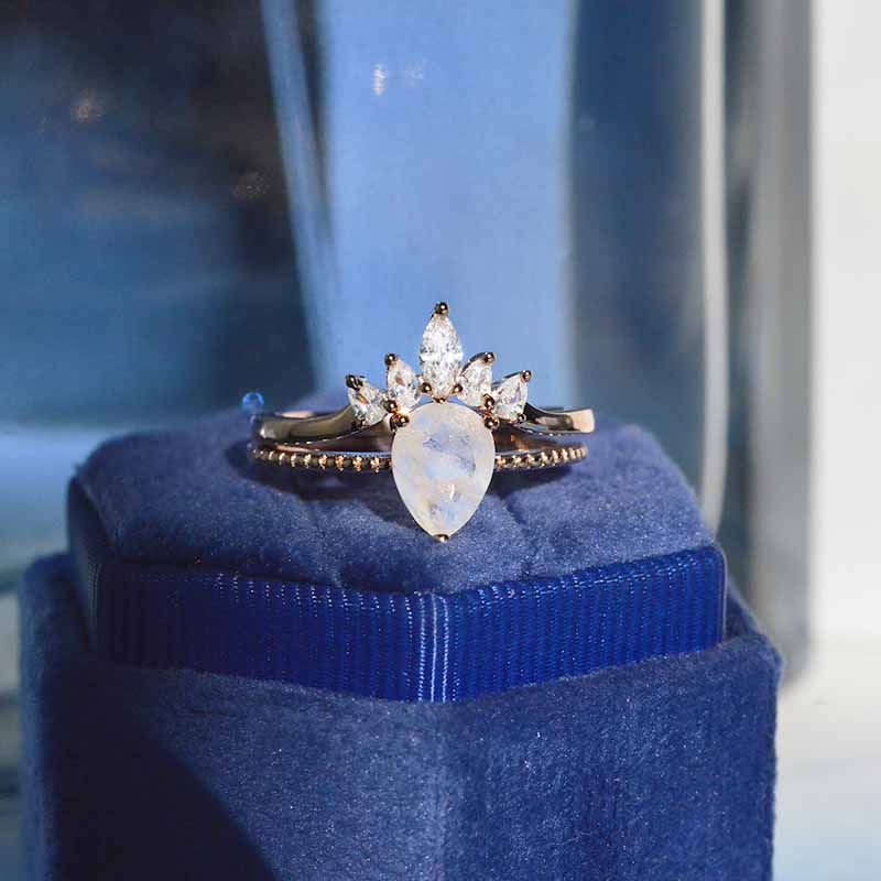 Pear Cut Moonstone Ring- Two Ring Set.