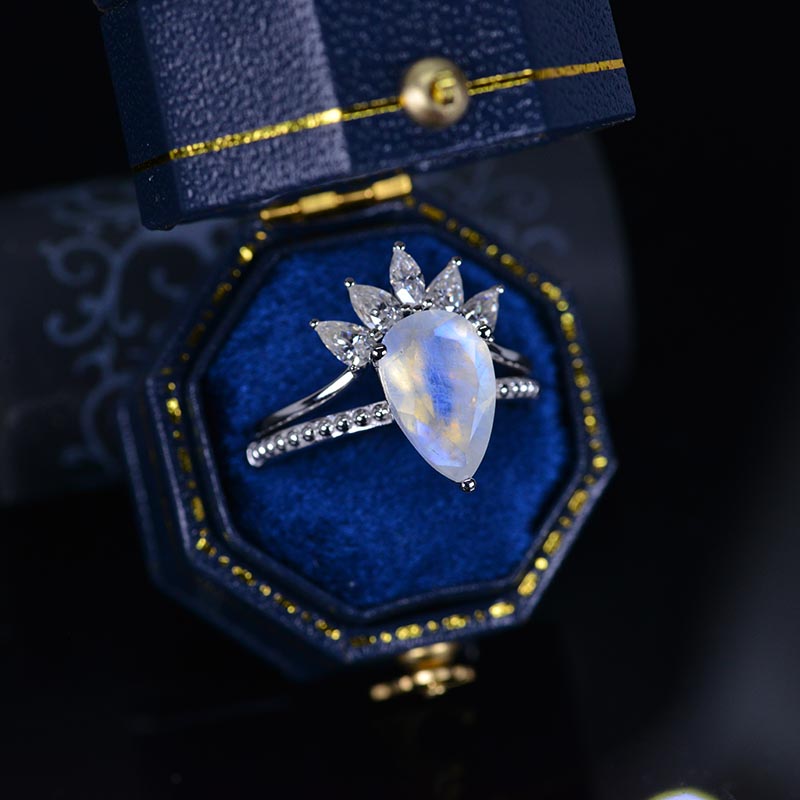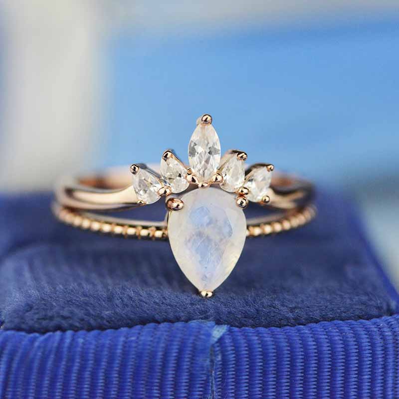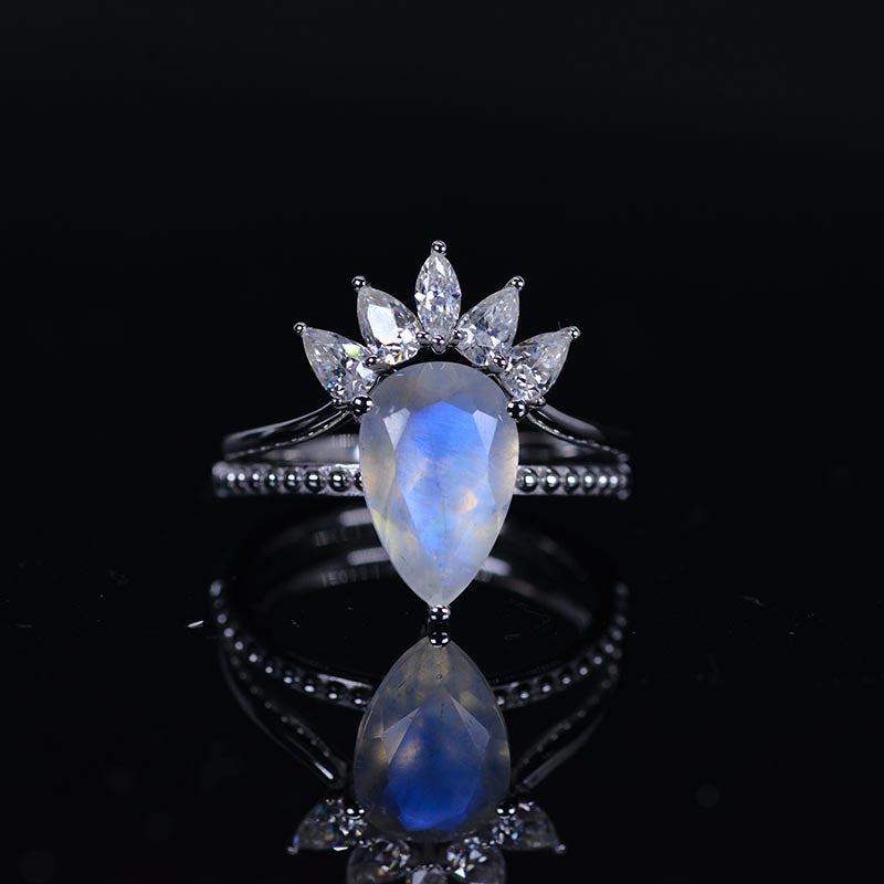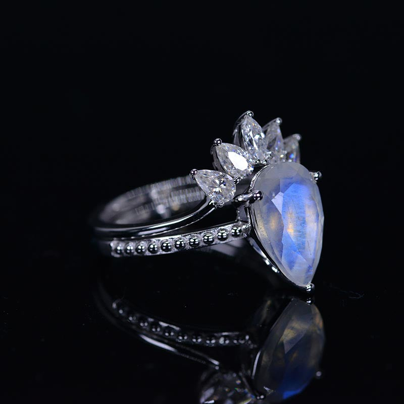 3 Carat Genuine Pear Cut Moonstone White Gold Ring- Two Ring Set - Giliarto
