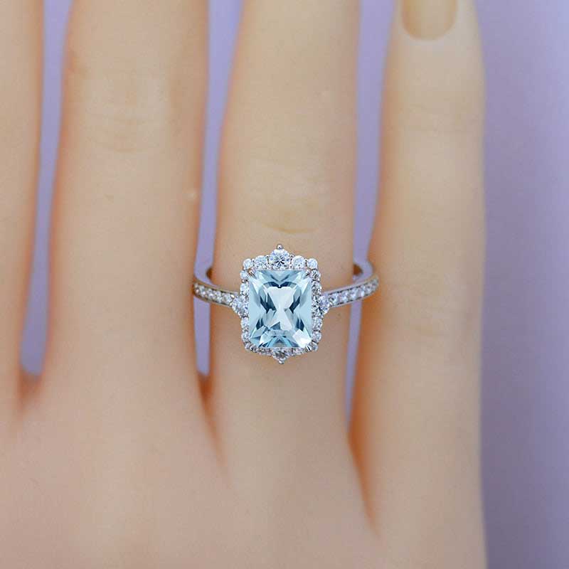3 Carat Giliarto Radiant Cut Genuine Natural Aquamarine Halo Engagemen