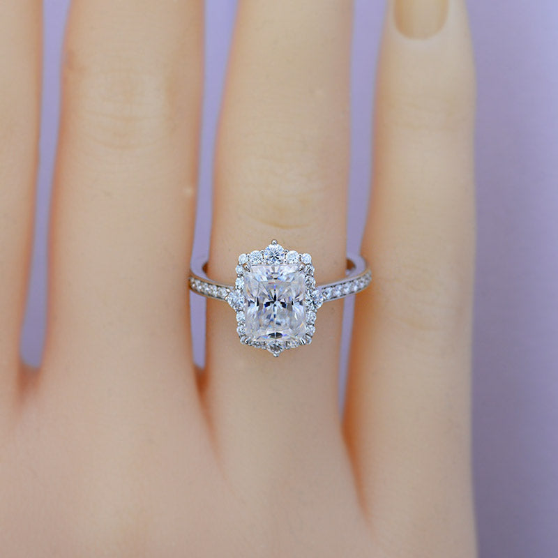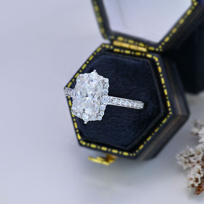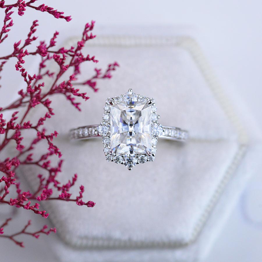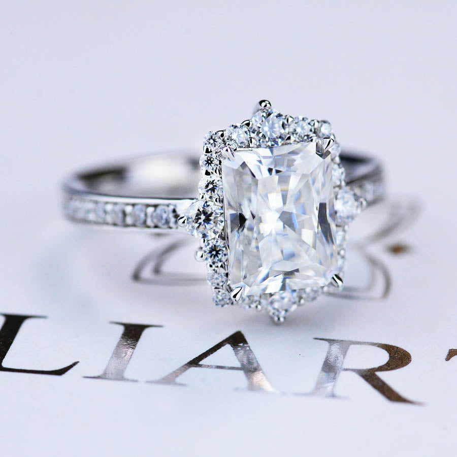 3 Carat Giliarto Radiant Cut Moissanite Halo Engagement Ring
