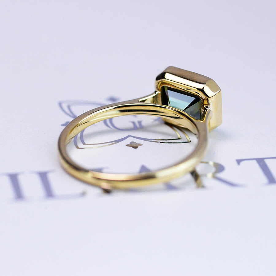 The default design option features  9x7mm Emerald Cut Moissanite stone,Â