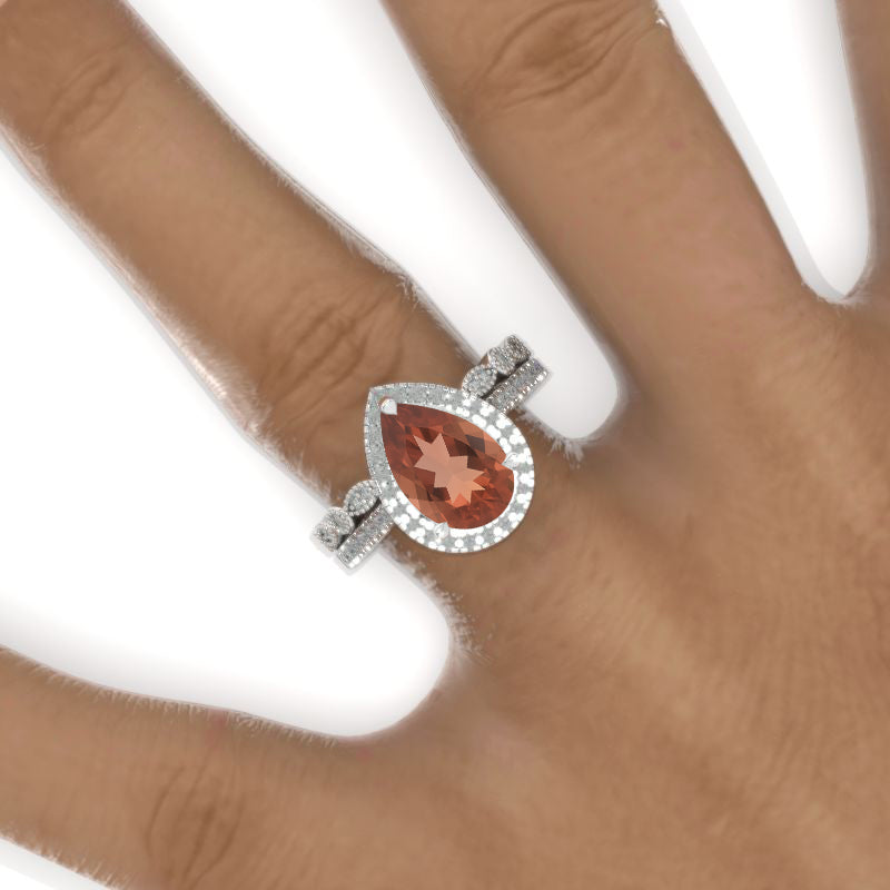 3 Carat Halo Pear Cut Zultanite 14K Solid White Gold Ring Set