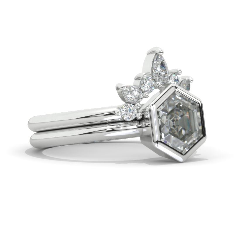 Engagement Ring: Approximately 3+ Carat LAB-Grown Diamond Hexagon 8mm D-Colorless, VVS1-Clarity, VG-Cut, Ex-Polish, VG-Symmetry Center Stone set with D- Colorless LAB-Grown Diamond Accent Stones in 14K White Gold Ring.