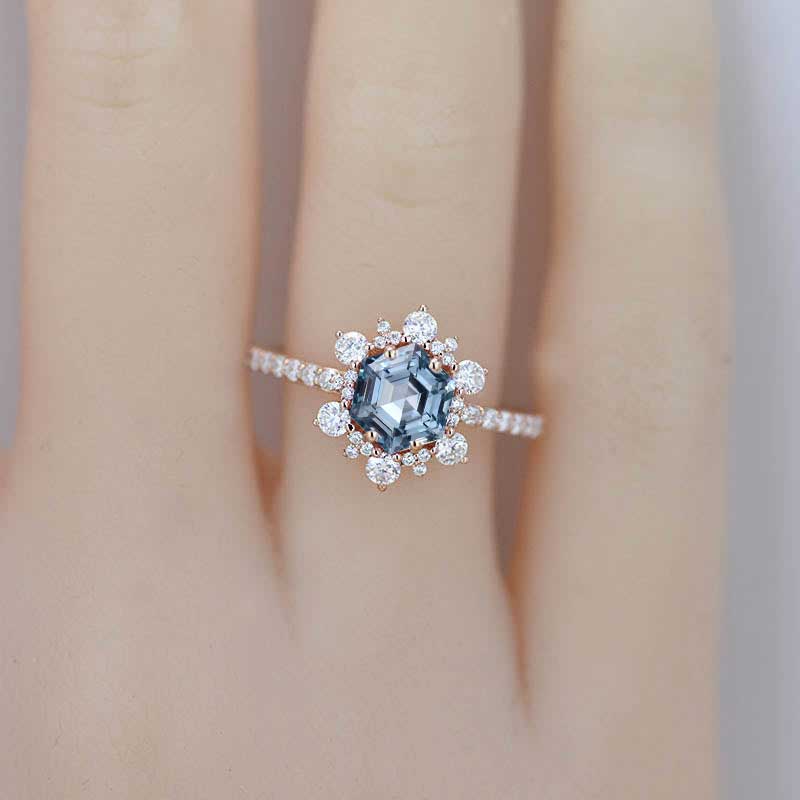 3 Carat Hexagon Genuine Natural Aquamarine Snowflake Halo Engagement R - Giliarto