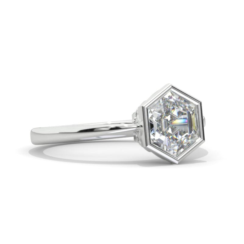 3 Carat Hexagon LAB-Grown Diamond Bezel Set Engagement Ring Model 881-8x7