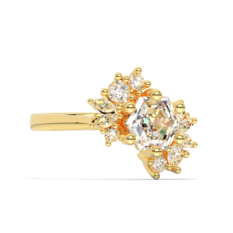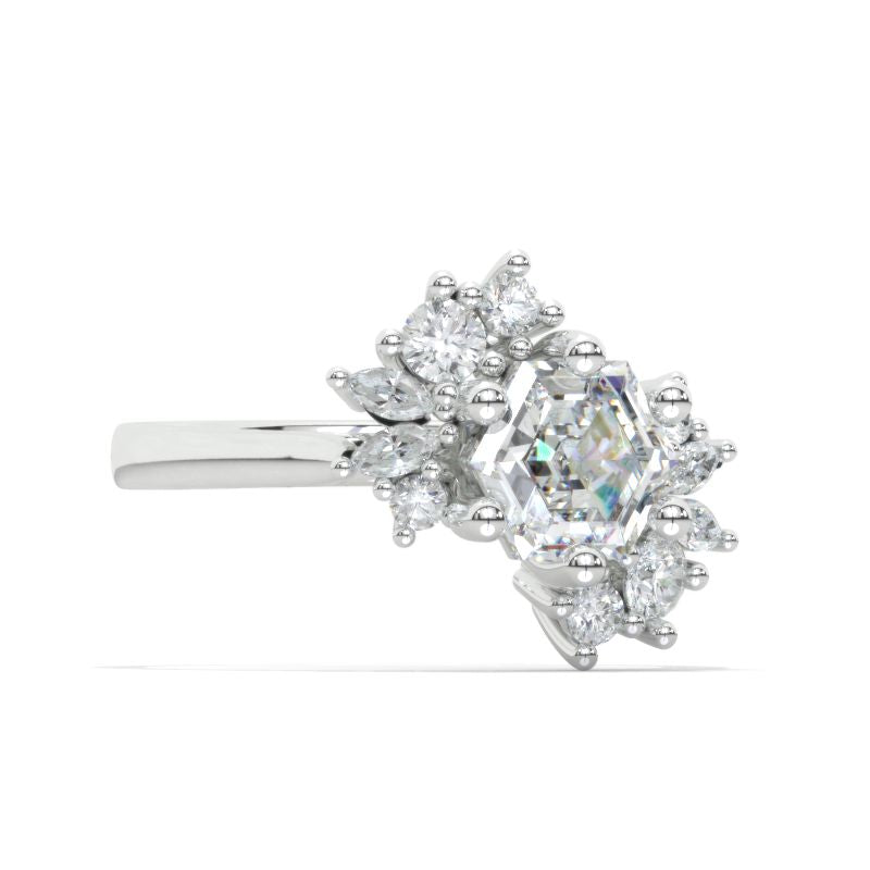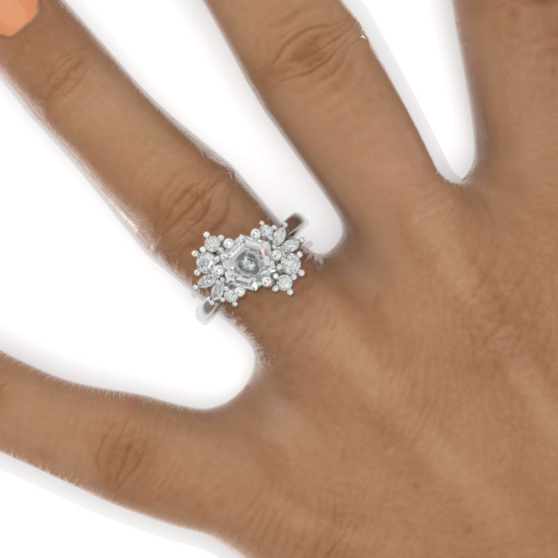 3 Carat Hexagon LAB-Grown Diamond Cluster 14K White Gold Engagement Ring Model 865-8x7