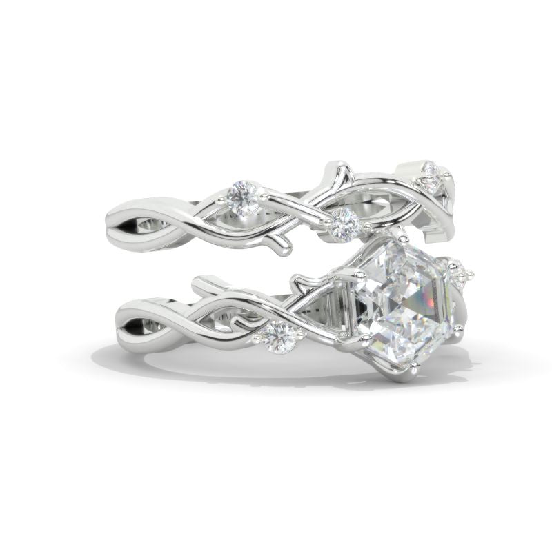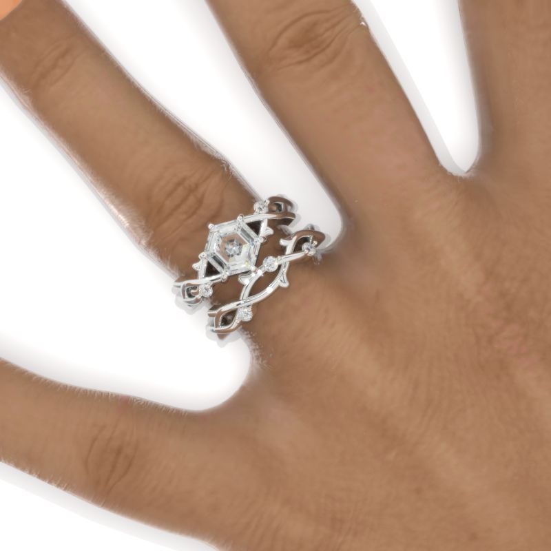 Engagement Ring: Approximately3+ Carat LAB-Grown Diamond Hexagon 8mm D-Colorless, VVS1-Clarity, VG-Cut, Ex-Polish, VG-Symmetry Center Stone set with D- Colorless LAB-Grown Diamond Accent Stones in 14K White Gold Ring.