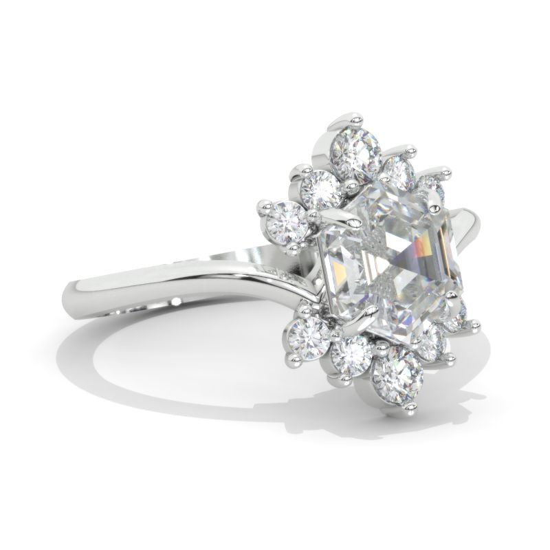3 Carat Hexagon LAB-Grown Diamond Halo 14K White Gold Engagement Ring - Giliarto