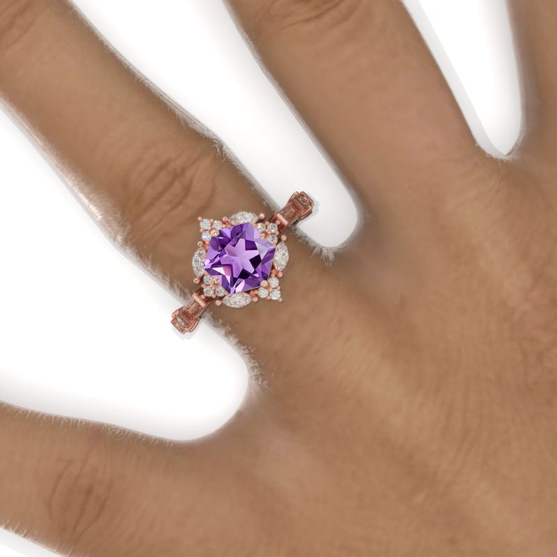 3 Carat Hexagon Natural Amethyst Halo 14K White Gold Engagement Ring - Giliarto