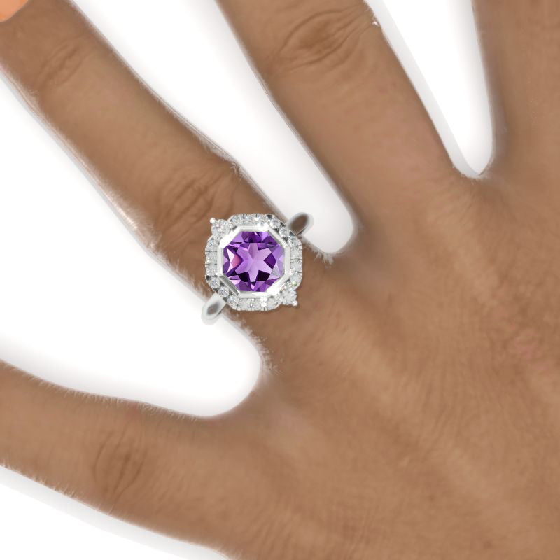 3 Carat Octagon Cut Natural Amethyst Halo 14K White Gold Engagement Ri - Giliarto