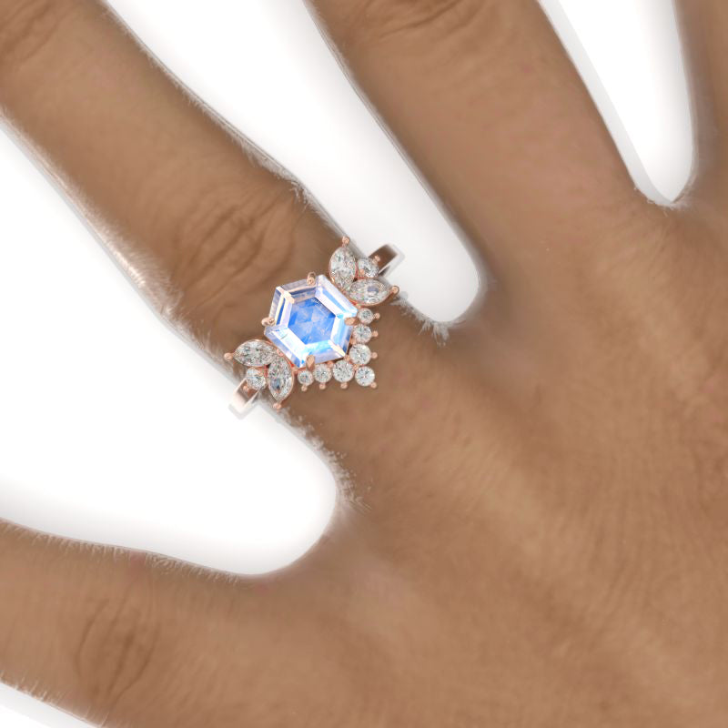 3 Carat Hexagon Genuine Natural Moonstone Cluster Halo 14K White Gold - Giliarto