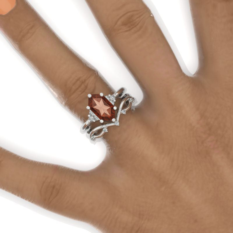 3 Carat Hexagon Zultanite Halo 14K White Gold Engagement Ring, Eternity Ring Set