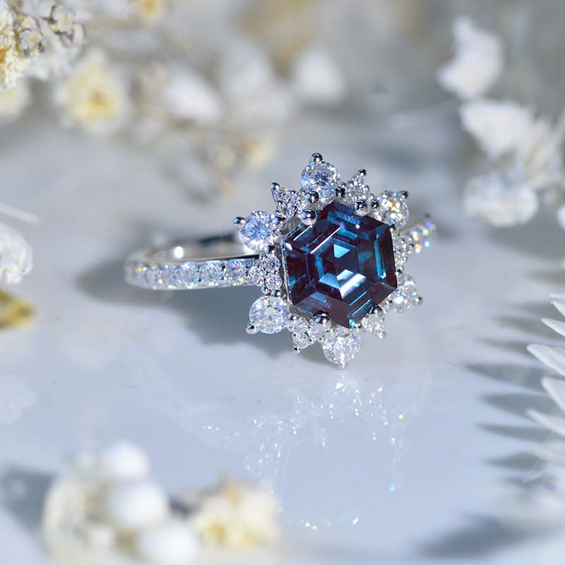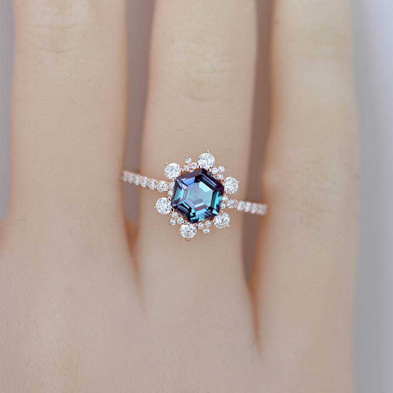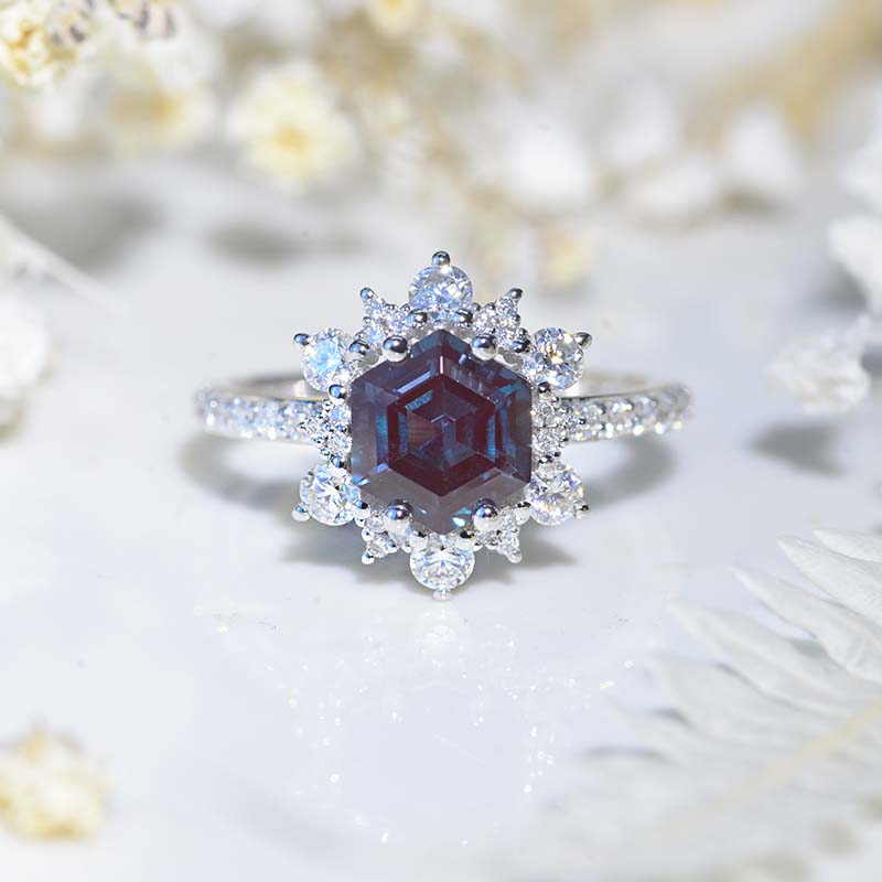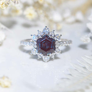 3 Carat Hexagonal Alexandrite Snowflake Halo Engagement Ring. Victoria - Giliarto