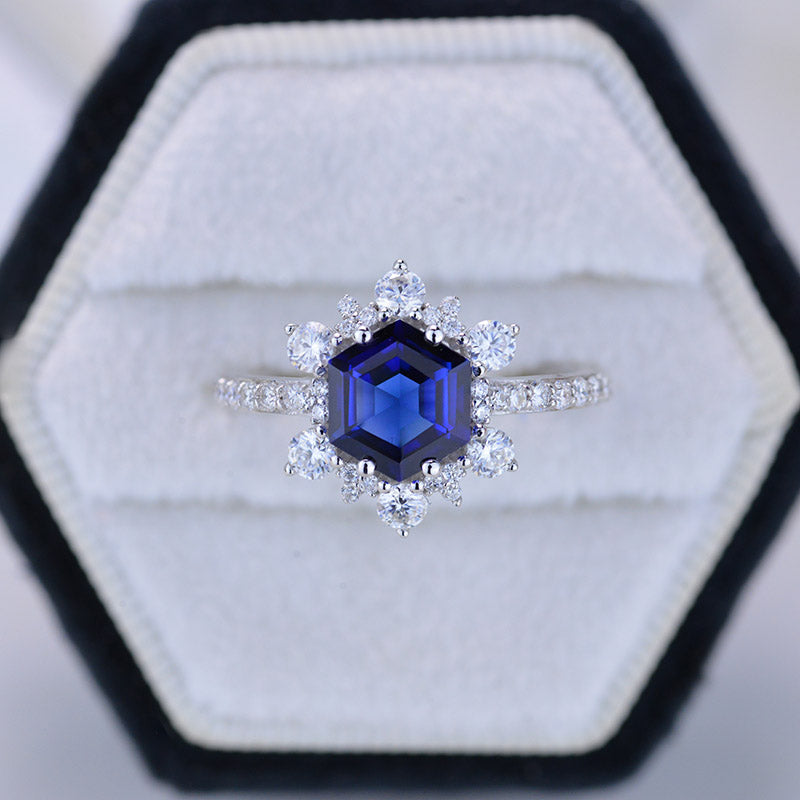 3 Carat Hexagonal Sapphire Snowflake Halo Engagement Ring. Victorian 1 - Giliarto
