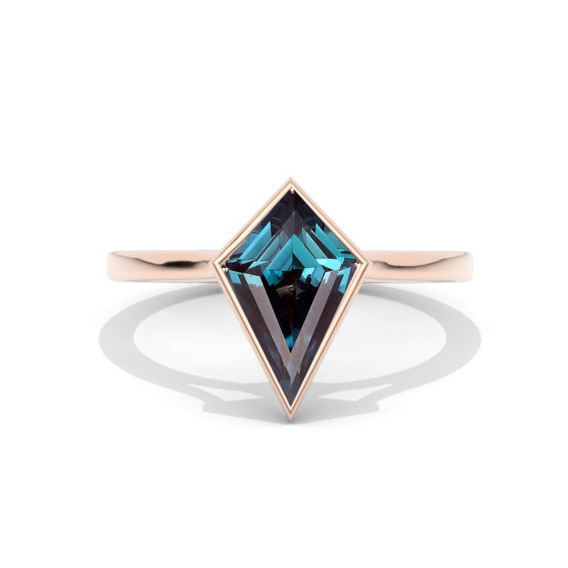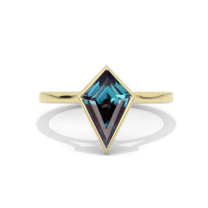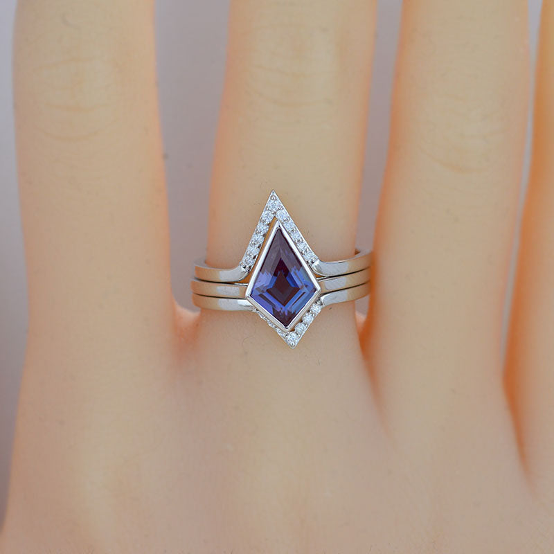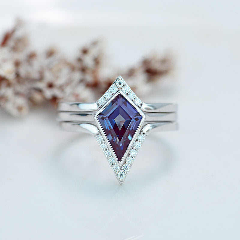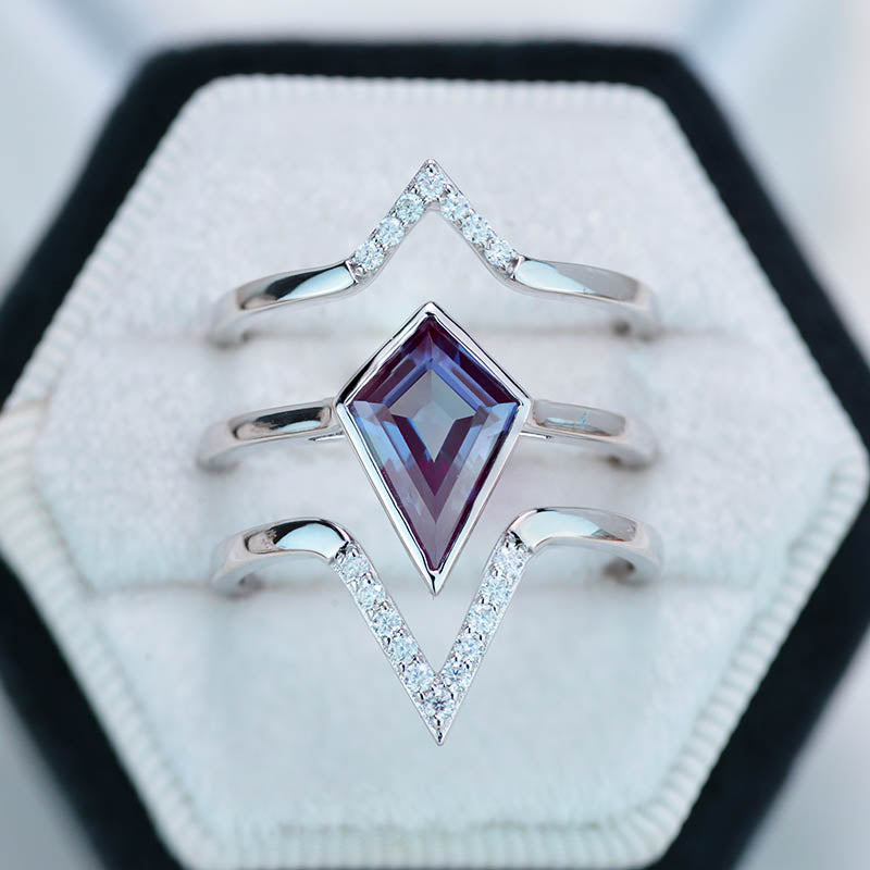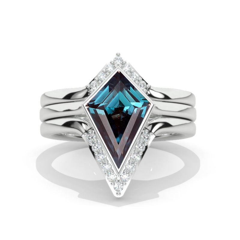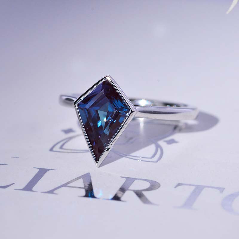 3 Carat Kite Alexandrite Bezel Solitaire Engagement 14K White Gold Rin - Giliarto