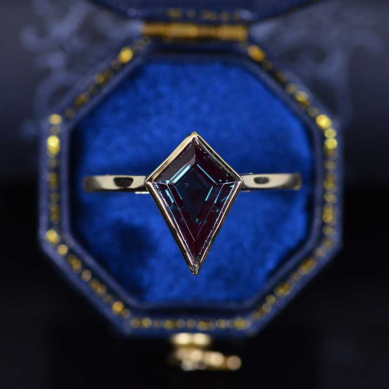 3 Carat Kite Alexandrite Bezel Solitaire Engagement Platinum Ring - Giliarto