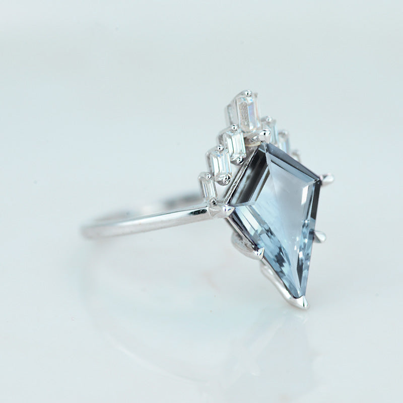 Engagement : 3 Carat Genuine Natural Aquamarine Kite 10x6 mm, VG-Cut, Ex-Polish, VG-Symmetry Center Stone with 38 Colorless 0.5 CTW Moissanite
