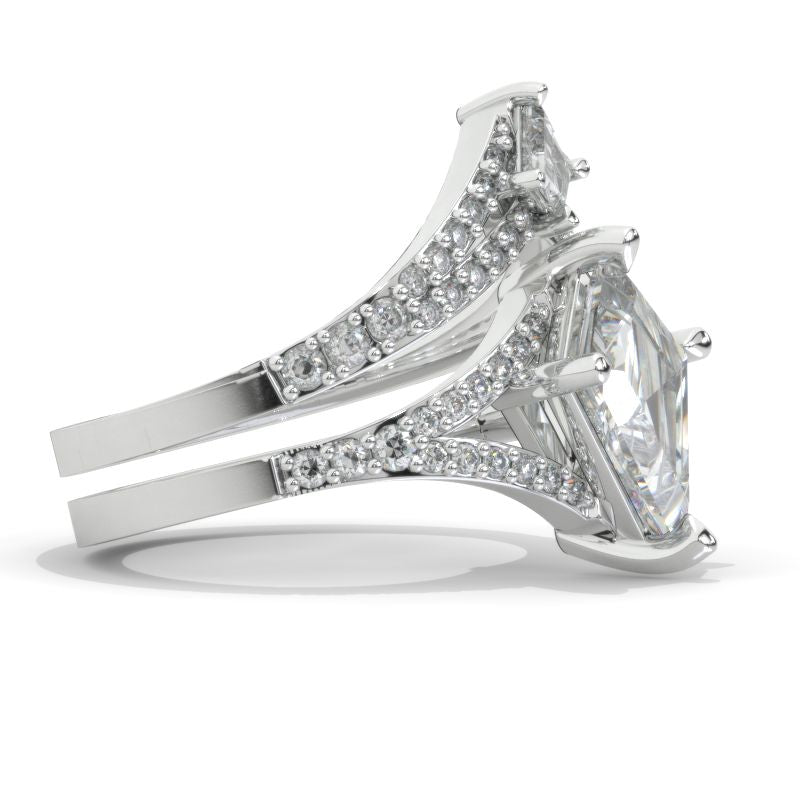 Engagement: Approximately 3+ Carat LAB-Grown Diamond Kite 12x8mm D-Colorless, VVS1-Clarity, VG-Cut, Ex-Polish, VG-Symmetry Center Stone with 38 Colorless 0.5 CTW LAB-Grown Diamond