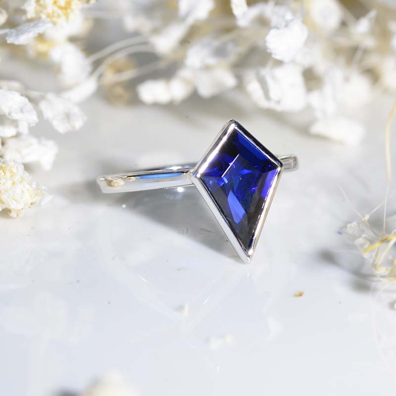 3 Carat Kite Royal Blue Sapphire Bezel Solitaire Engagement Ring - Giliarto