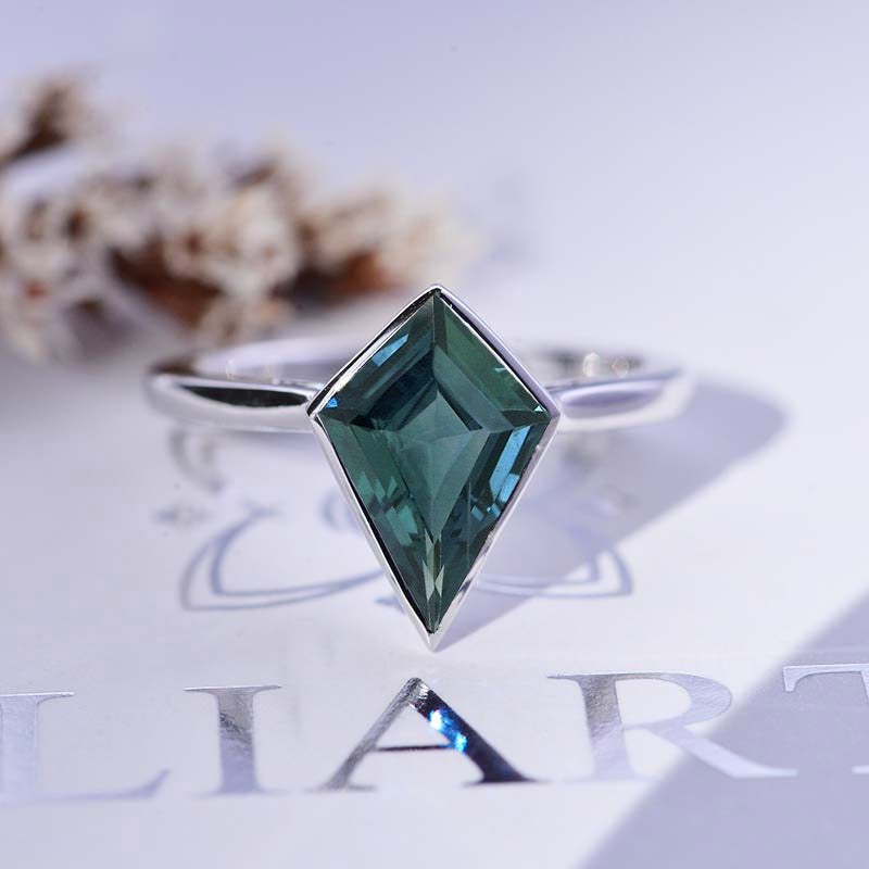 3 Carat Kite Teal Sapphire Bezel Solitaire Engagement Platinum Ring - Giliarto