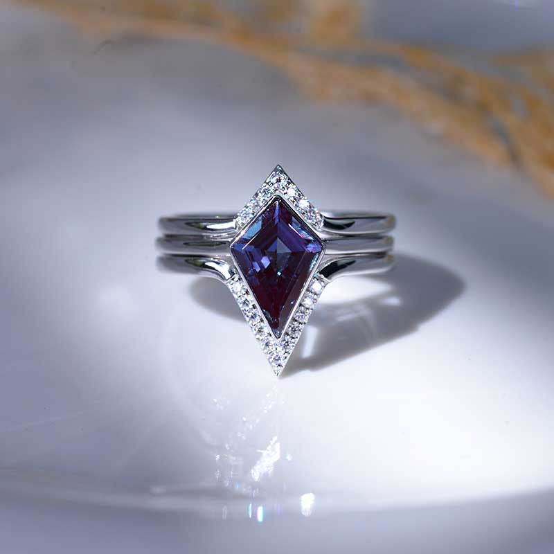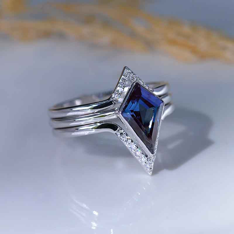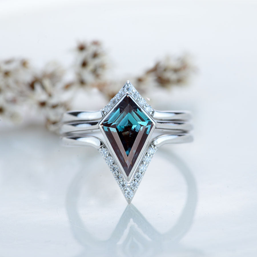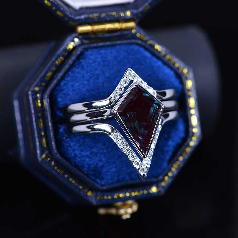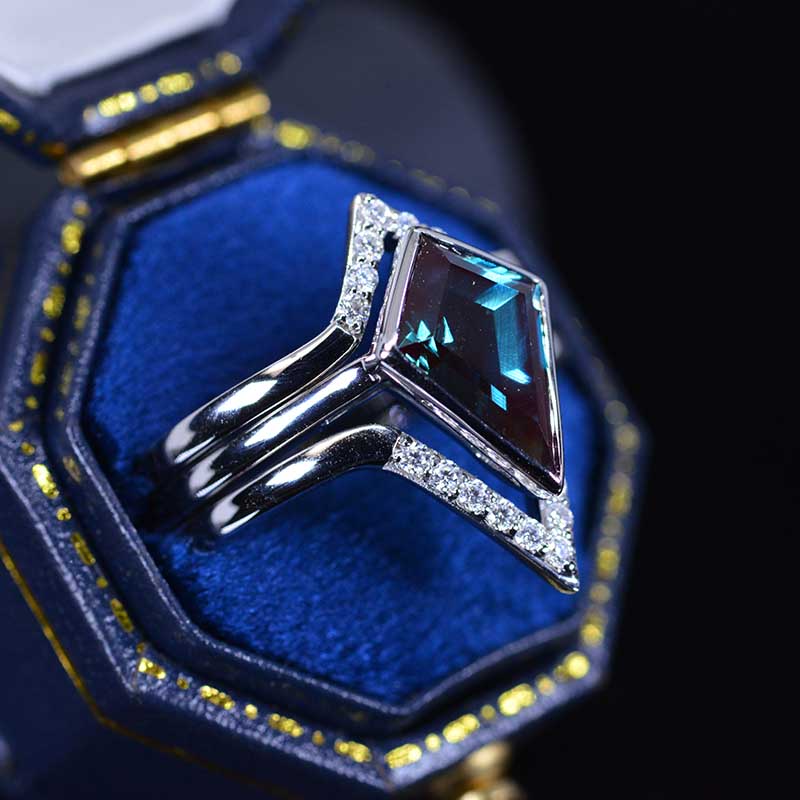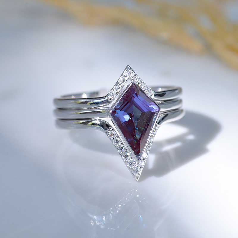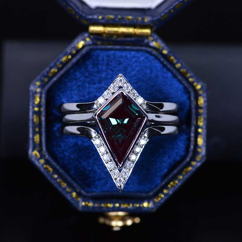 3 Carat Kite Vintage Kite Cut Alexandrite Halo Engagement Ring, Three Rings Set