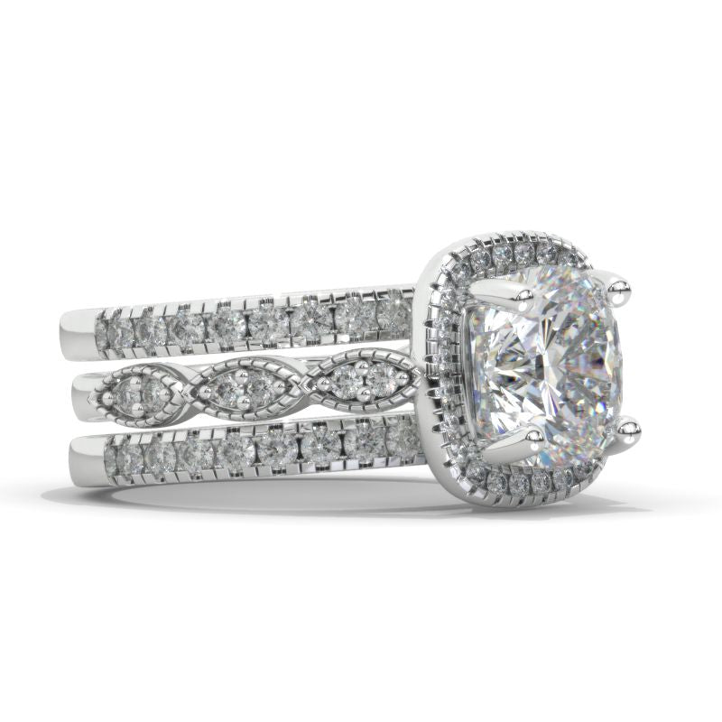 Engagement Ring Approximately 3+ Carat LAB-Grown Diamond Cushion Shape 9x9mm VVS1-Clarity, VG-Cut, Ex-Polish, VG-Symmetry Center Stone with Colorless 0.3 CTW LAB-Grown Diamond