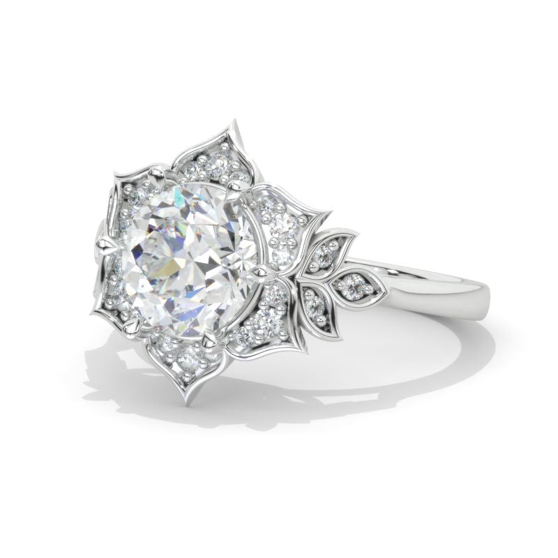 3 Carat LAB-Grown Diamond Halo Engagement Ring 14K White Gold Ring Model 776
