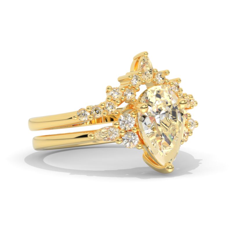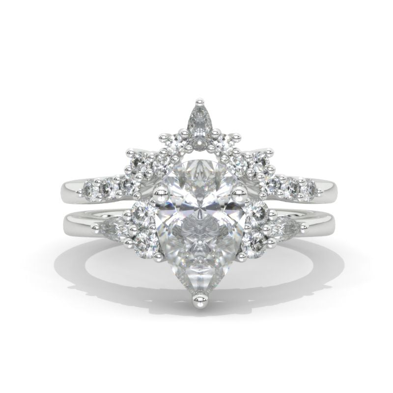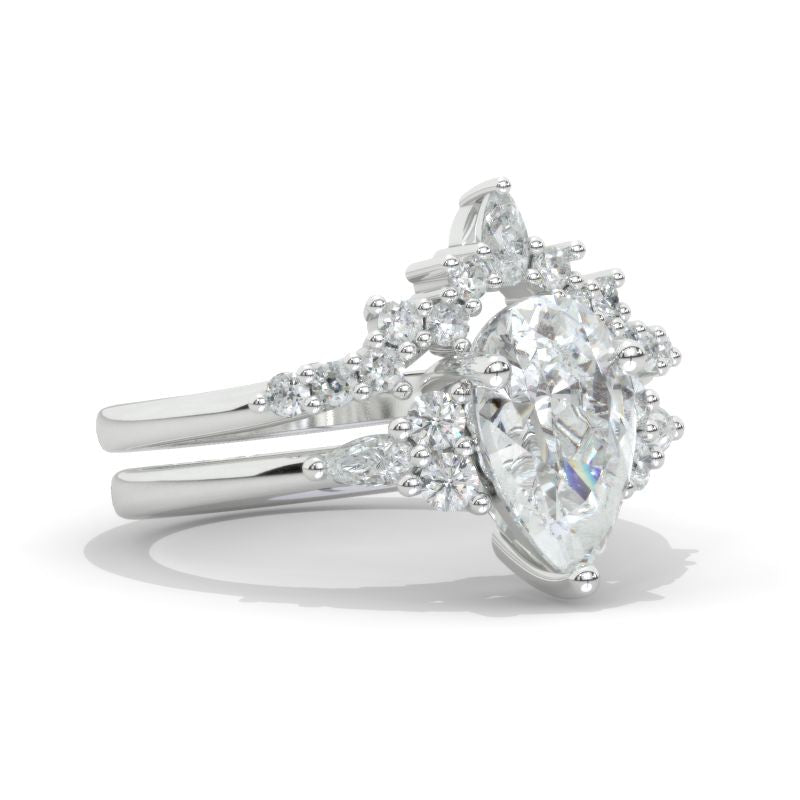 Engagement Ring Approximately 3+ Carat LAB-Grown Diamond Pear Shape 11x7mm D-Colorless, VVS1-Clarity, VG-Cut, Ex-Polish, VG-Symmetry Center Stone with Colorless 0.2 CTW LAB-Grown Diamond
