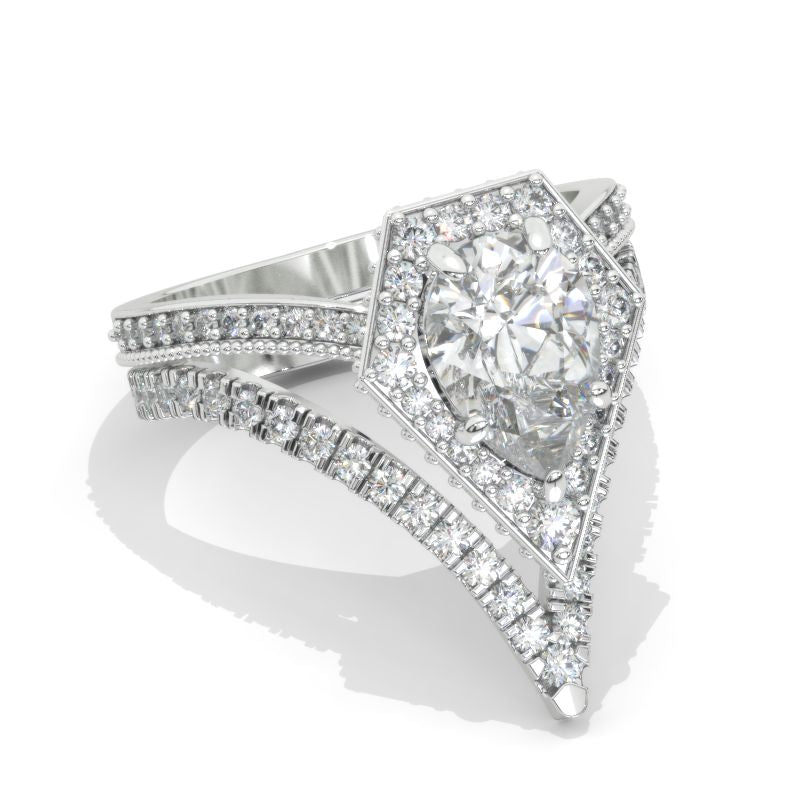 Engagement Ring : Approximately 3+ Carat LAB-Grown Diamond Pear Shape 11x9mm D-Colorless, VVS1-Clarity, VG-Cut, Ex-Polish, VG-Symmetry Center Stone with Colorless 0.3 CTW LAB-Grown Diamond